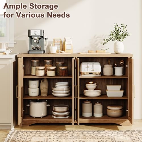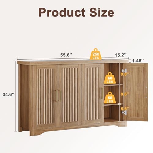 Modernus akcentinis bufetas su keturiomis durimis. Reguliuojamos lentynos viduje saugojimui. Medinis kavos baras valgomajam. Tinka virtuvei, svetainei ar prieškambariui. Natūralus ąžuolo atspalvis suteikia šilumos. Tvirta konstrukcija ilgalaikiam naudojimui. Lengva surinkti be įrankių. Universalus kaip konsolė ar kredensas. Saugo daiktus nuo dulkių.