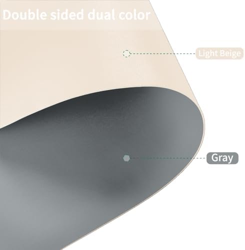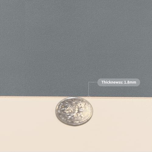 Aukštos kokybės dirbtinės odos danga staliukui. Vandeniui atspari ir atspari įbrėžimams. Dviejų pusių apsauga su skirtingomis spalvomis. Lengva valyti drėgna šluoste. Stabilus medžiagos storis 1,8 mm. Lengva pjaustyti pagal dydį. Slepi defektus ant paviršiaus. Tinka įvairiems baldams kaip valgomasis ar biuras. Izoliuoja garsą ant stiklo ar metalo. Off white ir šviesiai pilka spalvos.